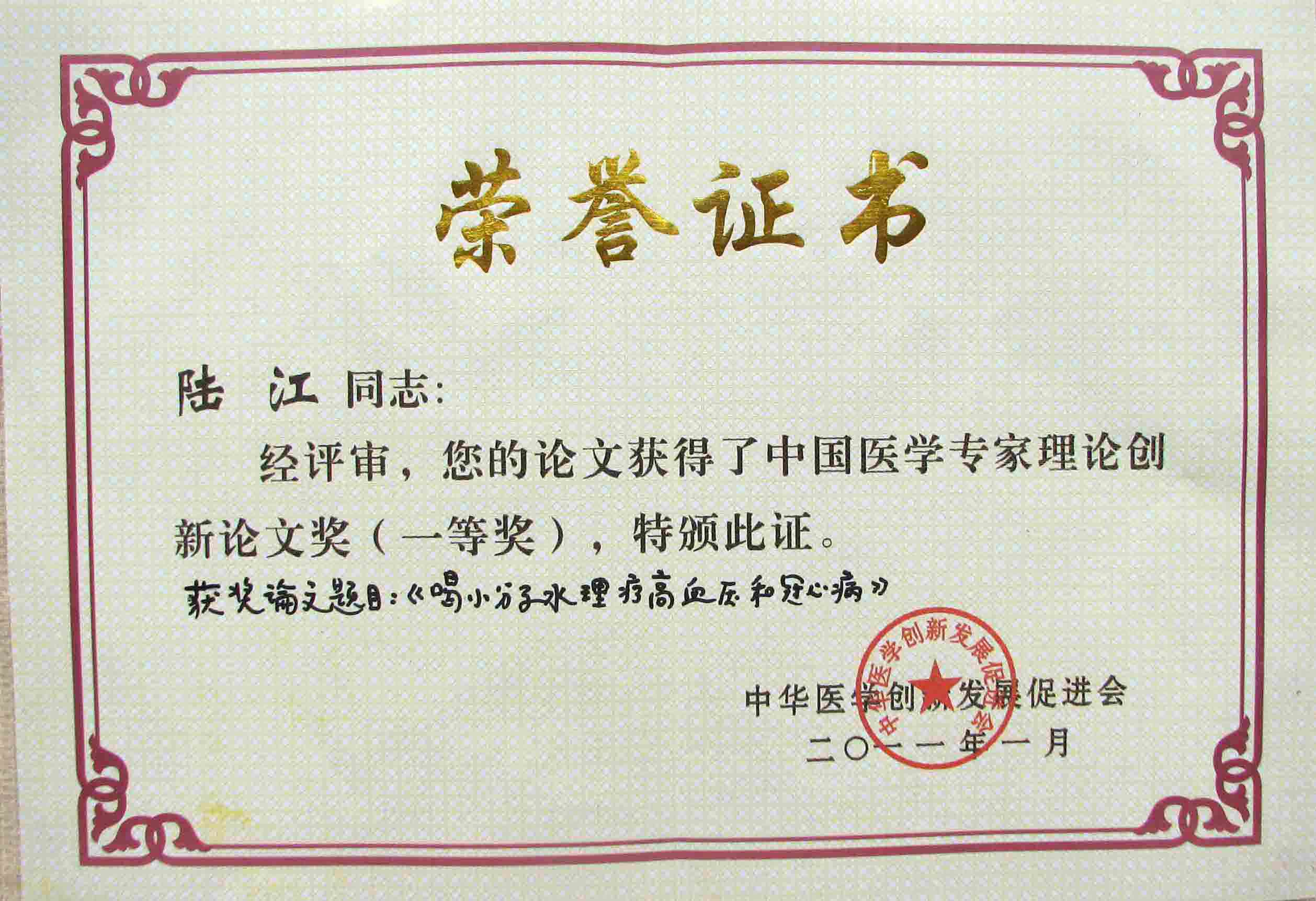 人類幾千年來患以上病癥需終生服藥,幾十年也不能治愈。可是我國南寧的高級工程師陸 江,于1990年想根治高血壓,研究發明了離子水瓶,處理出微小分子團水供飲用,經過醫院臨床試用和專家鑒定,1999年獲中國發明專利權,產品于2000年投放市場后一直跟蹤調查,據全國各地用戶反饋:祛除了高低血壓、糖尿病和冠心病,并使前列腺增生、咽喉炎、鼻竇炎、慢性氣管炎、支氣管炎、矽肺病、哮喘、慢性胃炎、腸炎、慢性膽囊炎、慢性腎炎、腎衰、膀胱炎、便秘、痔瘡、風濕性關節炎和濕疹皮炎及中風后遺癥等病癥不藥而愈。為什么喝微小水能治20多種病?陸 江從1991年德國科學家發現細胞膜水通道僅為2納米獲得啟發,認為多種器官患病是因細胞脫水,不能正常代謝和分裂增殖,才使器官細胞減少致衰弱萎縮而形成細胞缺水性病癥。22年來的實踐有力地支持了“細胞脫水致病”這一重要論點,表明喝微小水可滿足細胞的生理需求,補水就能祛病,是生命科學新亮點。